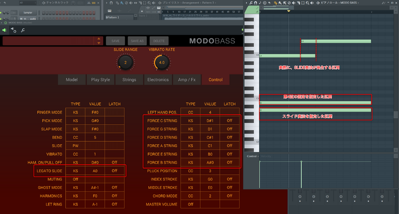 ファイル:FL 02.MODOBASS 05.MODOBASSのSLIDE奏法を発生させるノート指定.png