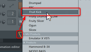 以下のように、チャンネルにFruityKickのチャンネルを追加します。