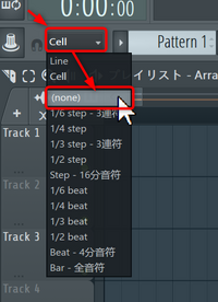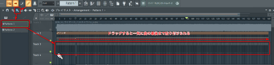 Pattern1として、プレイリストの空きトラックに最初から最後までベターっと貼り付けます、ブラシツールでドラッグすると一気に貼り付けられます。