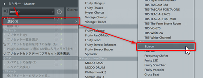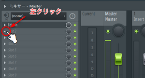 ミキサーのエフェクトスロットの適当な空き部分から新しくEdisonを立ち上げるため、ミキサーの空き部分の三角マークを選択します。