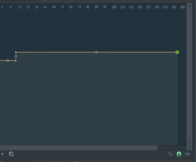 最初は元のテンポの162.619BPMを保つ平行な線しかないはずです。長さは、ケースバイケースでテンポオートメーションクリップを置いた位置からテンポの編集が有効になります。今、管理人の画面では3小節目にテンポオートメーションクリップを置いています。そして、さきほどのテンポ編集ウィンドウでは1小節目からN小節目まで162.619で設定されています。仮に、この曲の最後の小節が170小節目だったとしたら、曲全体の長さは168小節なので、テンポも168小節まで定義されていれば十分ということになります。この引き算がなされるのは、最初の2小節は何も演奏しない空白として設定したからですね。では、168小節目までテンポが162.619であることを明確に一度定義してみましょう。
