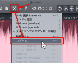 これで新しくEdisonのウィンドウが起動できるので、ここにハサミマークアイコンをクリックして表示されるメニューから[ペースト追加]を選択します。